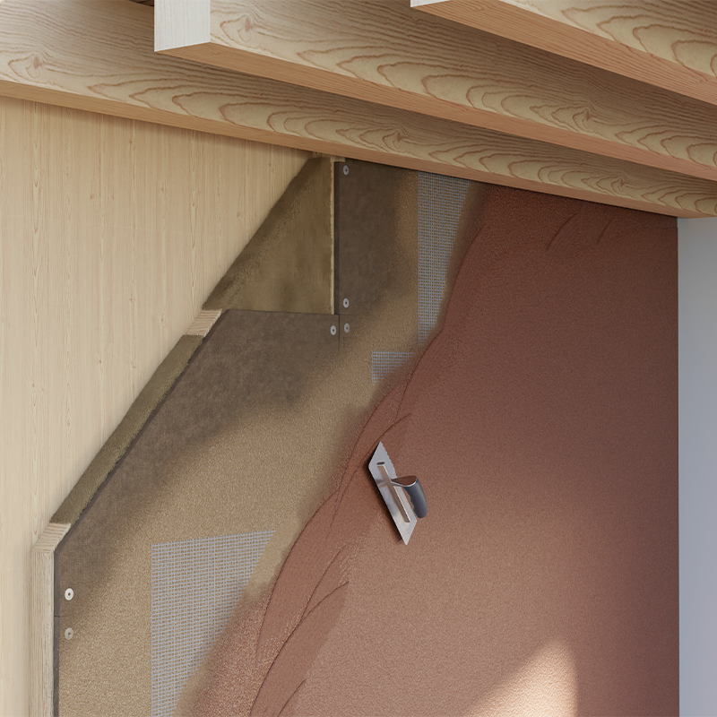 Intonachino in argilla-silicato per la finitura di interni o pannelli in terra cruda
