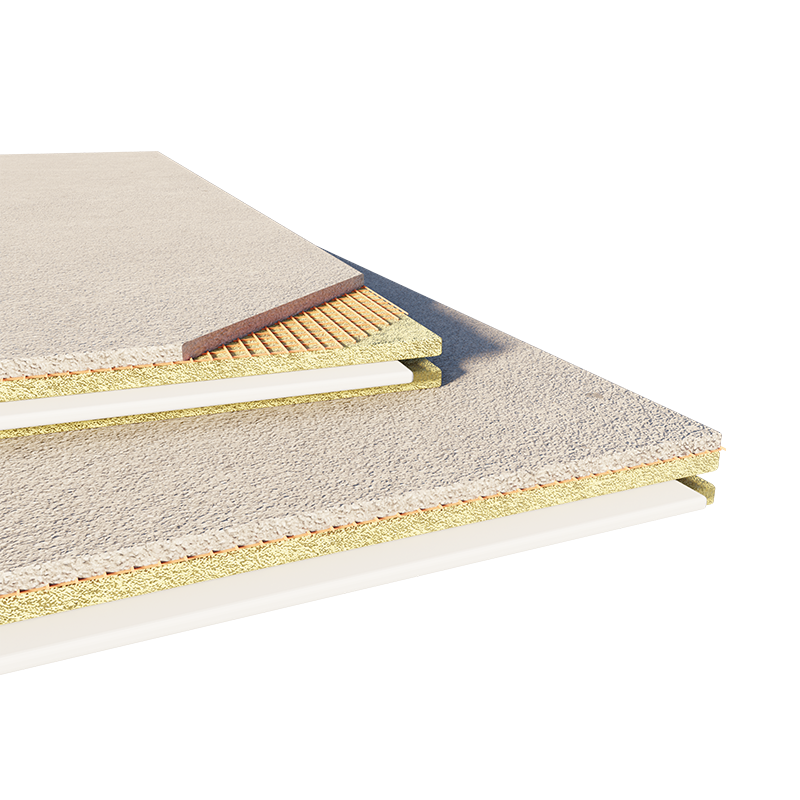 – System aus vorverputzter Platte + Spachtelmasse + mikroporösem Farbputz