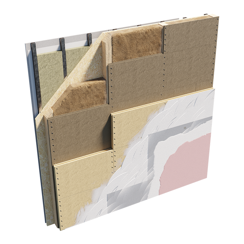 Starre und atmungsaktive technische Platte als Abschluss von Platform- Frame-Wänden