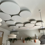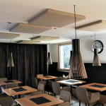 Schallabsorbierendes System DESIGN mit deckenmontierten Paneelen