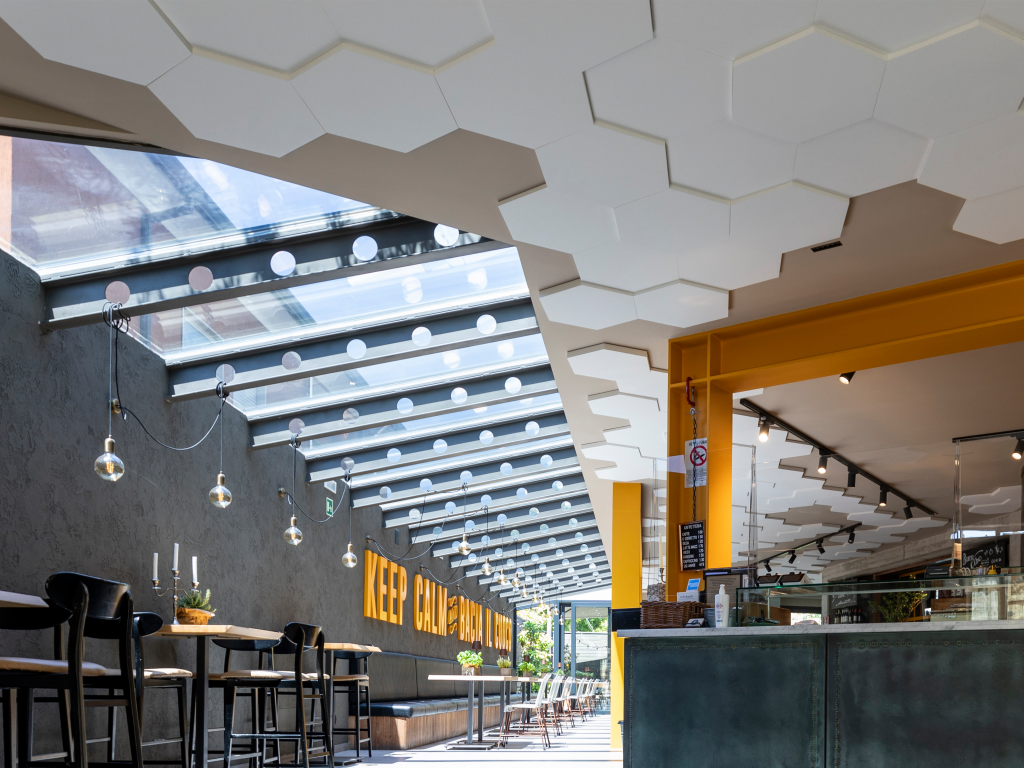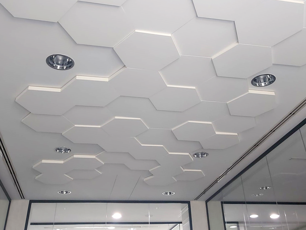Schallabsorbierendes System DESIGN mit abgehängten Deckenplatten