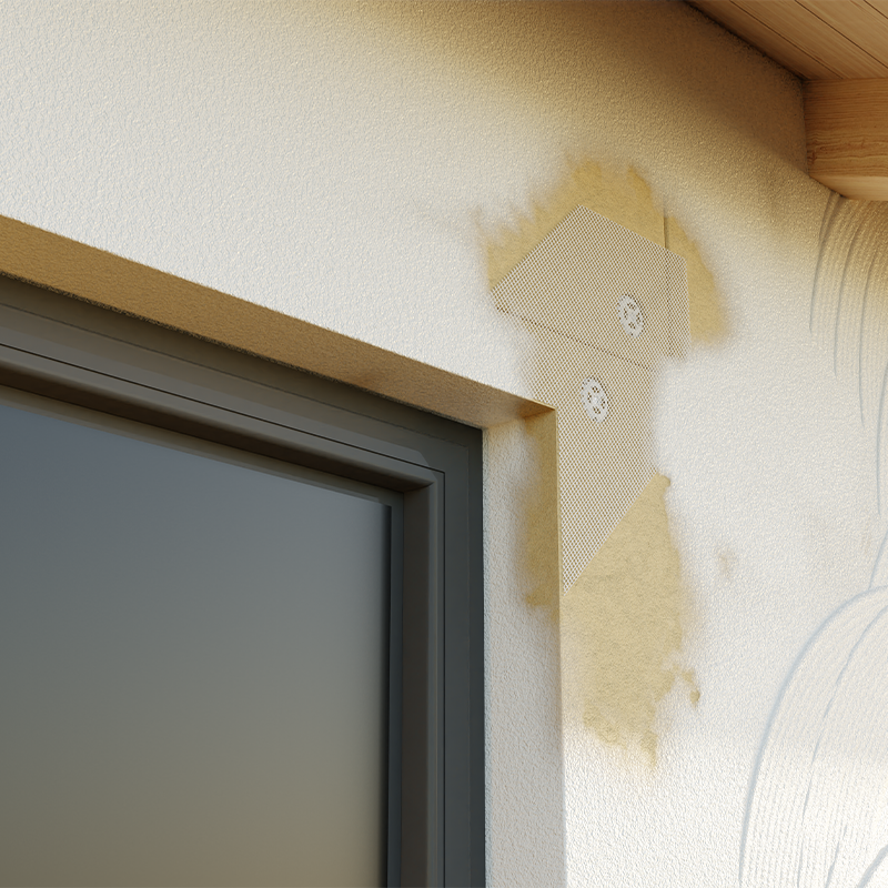 – Verhindert 45°-Risse des Putzes an den Ecken von Maueröffnungen