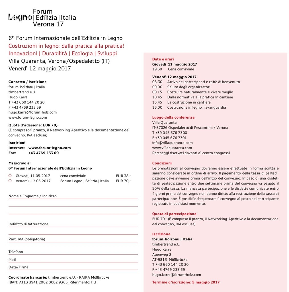 Riwega e 3Therm parteciperanno al 6 Forum Internazionale dell’Edilizia in Legno