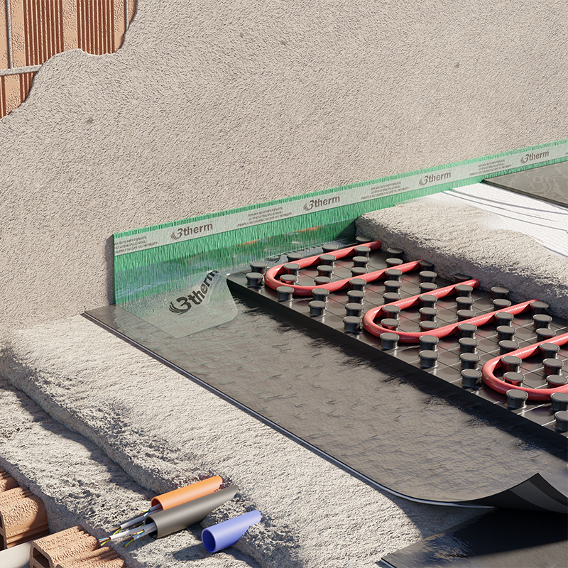 – Velo di sormonto in PE per impermeabilità del giunto sul pannello di riscaldamento radiante