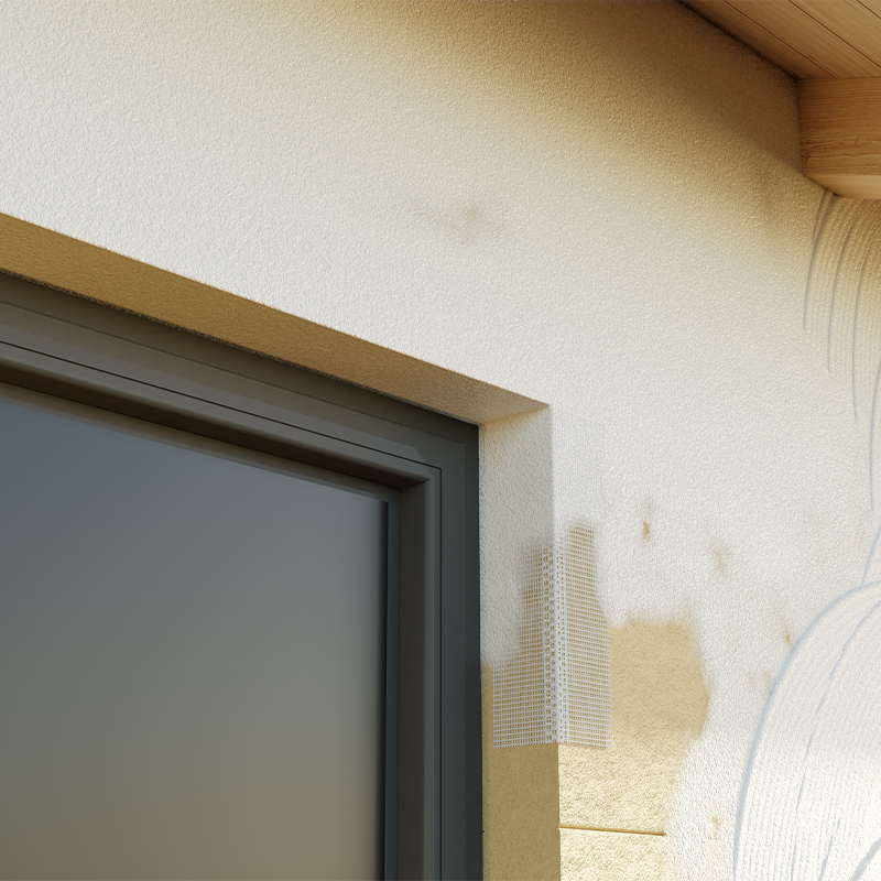 – Applicabile con collante sugli spigoli dell’edificio e dei fori di finestre e porte